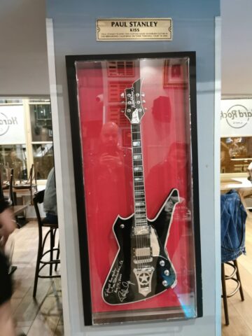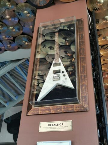 There’s also a band-signed Metallica guitar on the wall, a classic “all four signatures” showpiece that’s become one of the cafe’s most-photographed items.