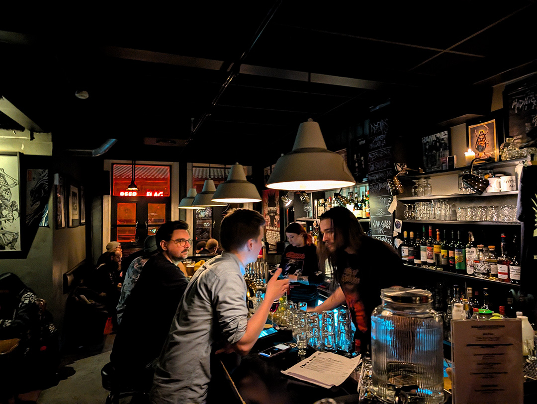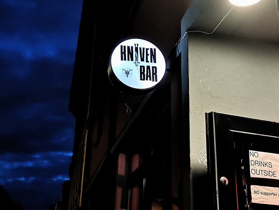 Kniven is a dedicated metal bar in Oslo, closely associated with the city’s heavy music scene and often described as one of Oslo’s main hangouts for metal fans. Opened in 2013, it was founded by Dan Nordhagen and became known for a music profile centred on heavy metal and adjacent styles, with a compact, intimate bar setting rather than a full-scale venue. The bar has built a reputation as a late-night meeting point before and after gigs in the area, as it is close to venues like Rockefeller, Sentrum Scene, John Dee, Goldie, and Blå. Kniven also have a small stage in the basement that they share with the neighbor pub Revolver.
