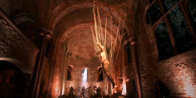 The Evangelical Church in Pisarzowice is also the location for Behemoth’s “In Absentia Dei” performance, filmed and streamed on 5 September 2020. The production was staged inside the church ruins as a four-act set designed specifically for the livestream format, and the recording was later released as an official live title under the same name.